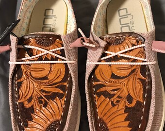 Sunflower Spiral Tooled Custom Hey Dude Shoes Ttt Custom Leather
